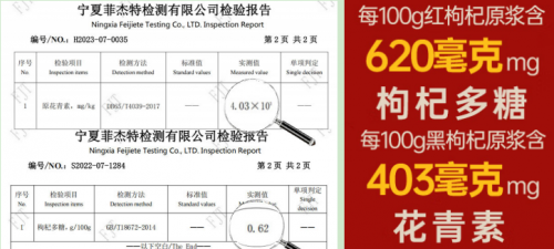 探究其產(chǎn)品力,需從根本看起。其配料表做到了極致的純凈:僅含青海黑枸杞原汁與寧夏紅枸杞原汁,不添加一滴水、防腐劑、色素或香精。這份純粹,源于對(duì)原料的絕對(duì)自信。每一袋原漿,皆濃縮了300顆鮮枸杞的頭部精華,并經(jīng)譜尼測(cè)試(帶CMA標(biāo)識(shí))權(quán)威檢測(cè),核心成分含量扎實(shí):枸杞多糖達(dá)620毫克/100克,花青素達(dá)403毫克/100克。